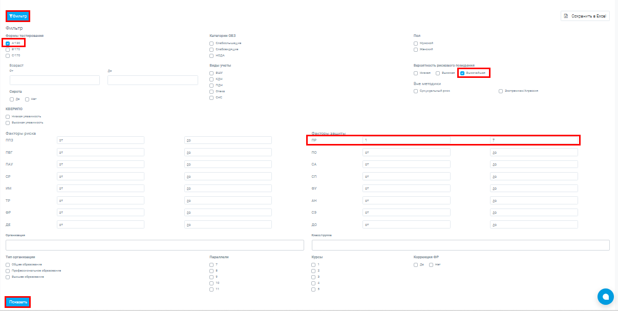 Далее необходимо выбрать фильтры, по которым произойдет сортировка результатов, и нажать на кнопку «Показать».