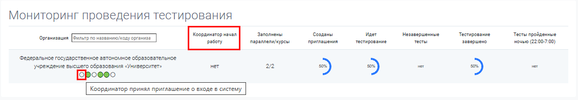 «Координатор начал работу»: данный показатель позволяет увидеть принял ли координатор/координаторы приглашение и активировал ли свою учётную запись.